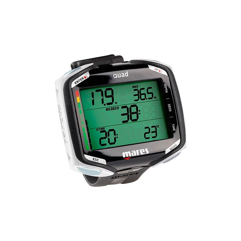 Cambio de gas: Benefíciese de tiempos de descompresión más cortos configurando el ordenador para incluir uno o más gases enriquecidos con oxígeno (hasta el 99%) además de su gas principal y cambiando durante la inmersión.