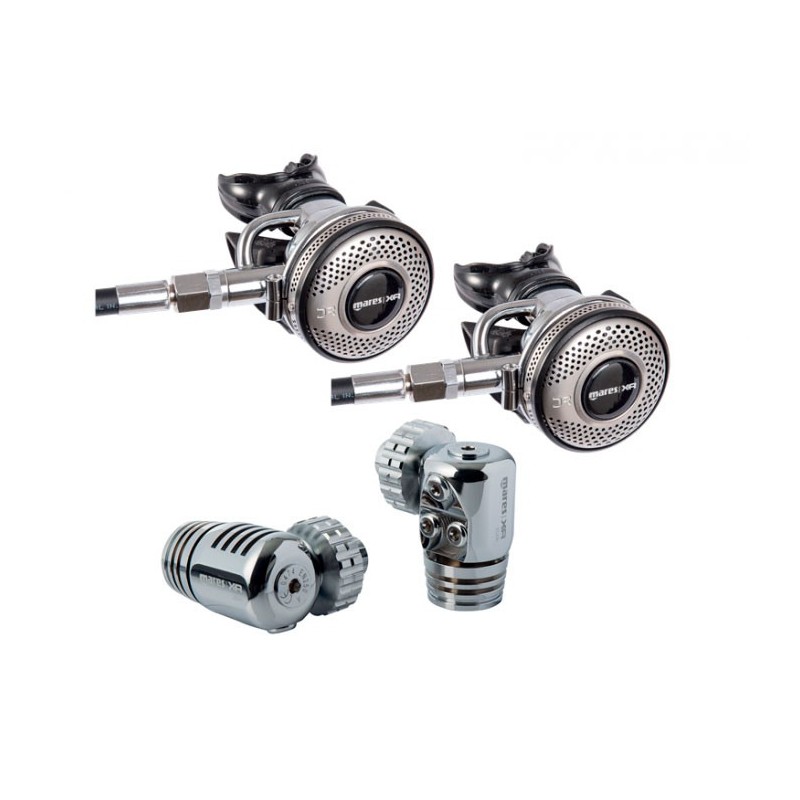 En este Kit, Mares a recurrido a la 1ª etapa 25XR, cual goza de las mismas prestaciones que su hermana mayor 75XR a excepción de la cantidad de salidas y orientación de las mismas. Las primeras 25XR disponen de las salidas en una sola de sus caras y están específicamente pensadas para montarse simétricamente el el bibotella. Esto combinado con la 2ª etapa DR, le dan las mismas prestaciones que al kit 75XR