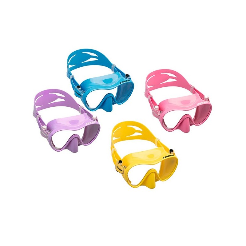 F1 SMALL es una moderna máscara monocristal para caras estrechas con diseño especialmente elegante y armonioso derivada del modelo SKY Junior ahora con tecnología Framelss. El sistema Frameless consiste en que el facial de silicona se ensambla directamente sobre el cristal sin necesidad de montura. La no existencia de una montura rígida garantiza una buena visibilidad en todas direcciones, ya que permite un máximo acercamiento ojo/cristal sin molestas presiones en la frente o zona parte superior de la nariz. El facial es muy polivalente para todo tipo de fisonomías menudas y ofrece un elevado confort incluso con utilización muy prolongada. El calculado diseño de los espacios interiores combinado con la calibrada flexibilidad del facial, variable dependiendo de la zona, proporcionan una gran estabilidad de la máscara unida a un gran confort y polivalencia de adaptación. Las hebillas son completamente basculantes y con regulación inmediata de la tira con una sola mano. El anclaje del sistema de hebillas en la montura evita la deformación del facial de silicona durante el uso de la máscara (propio de los modelos que anclan las hebillas en el propio facial) y la tensión de la tira se produce sobre la montura, optimizando a gusto del usuario el nivel de proximidad del cristal/ojo y, por lo tanto, el volumen y la visibilidad óptima de la máscara. Es un máscara idónea para uso amateur y deportivo: snorkeling y buceo.