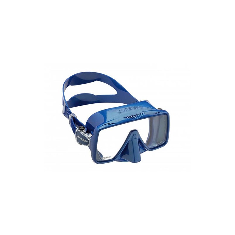 Las hebillas son completamente basculantes y con regulación inmediata de la tira con una sola mano. El anclaje del sistema de hebillas en la montura evita la deformación del facial de silicona durante el uso de la máscara (propio de los modelos que anclan las hebillas en el propio facial) ya que la tensión de la tira se produce a la altura del cristal, optimizando a gusto del usuario el nivel de proximidad del cristal/ojo y, por lo tanto, el volumen y la visibilidad óptima de la máscara.