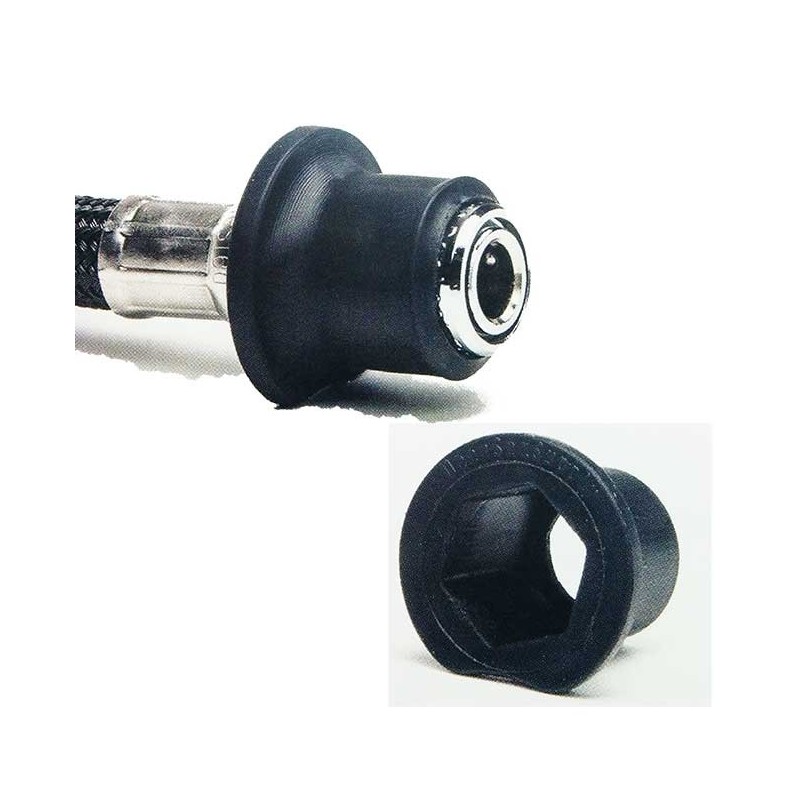 El pomo de goma es ideal para instalarlo en el terminal del latiguillo inflador y poder operar con el mas facilmente. Incluso con guantes gruesos es muy fácil poder conectar y desconectarlo.
