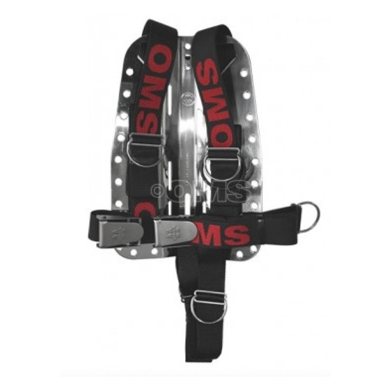 Arnés clásico tipo DIR, cincha de Nylon de 5cm de ancho, tres anillas del tipo D-Ring con sus correspondientes retenedores, dos al pecho y una a la izquierda.