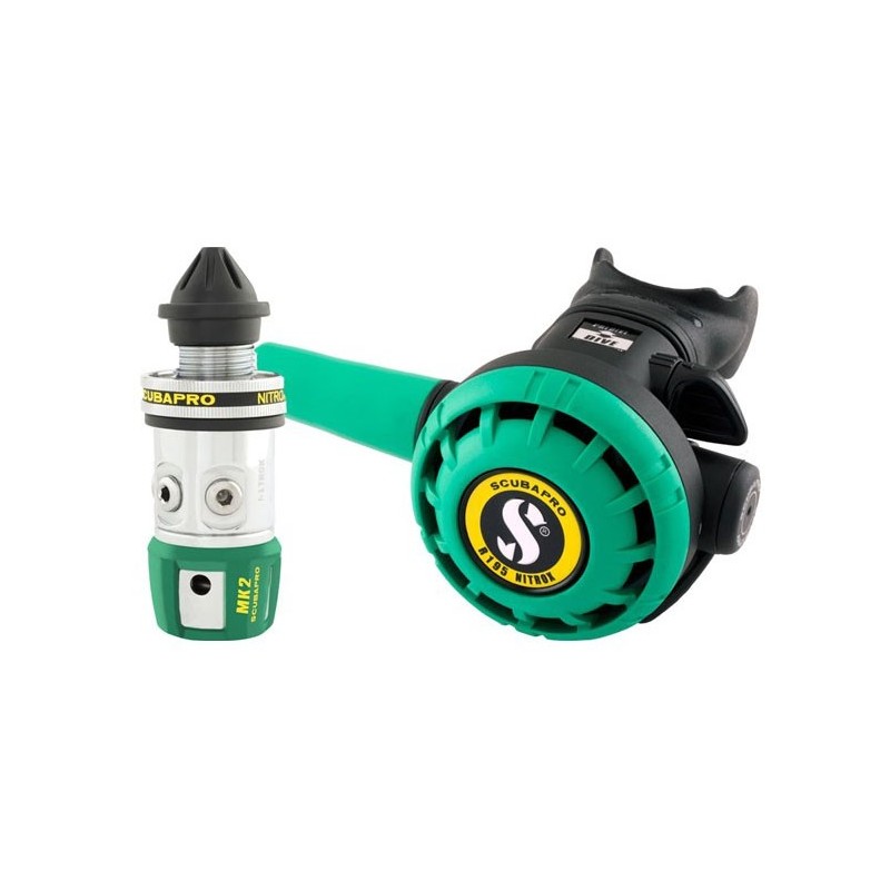 Sal sistema Scubapro MK2 R195 Nitrox está basado en una primera etapa de pistón desarrollada respetando las normas de seguridad más exigentes en materia de dispositivos respiratorios.