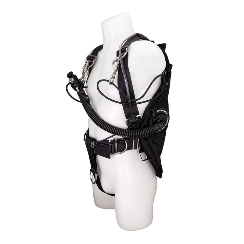 El set Blade Tech está compuesto por el ala Blade y el arnés Blade Tech. Un arnés de fijo momntado directamente en la espaldera porta lastre Scuba Force Soft Pad. Un equilibrio perfecto para utilizar arnes fijos sin renunciar a las espalderas porta lastre que tan práctico hacen la carga del plomo.