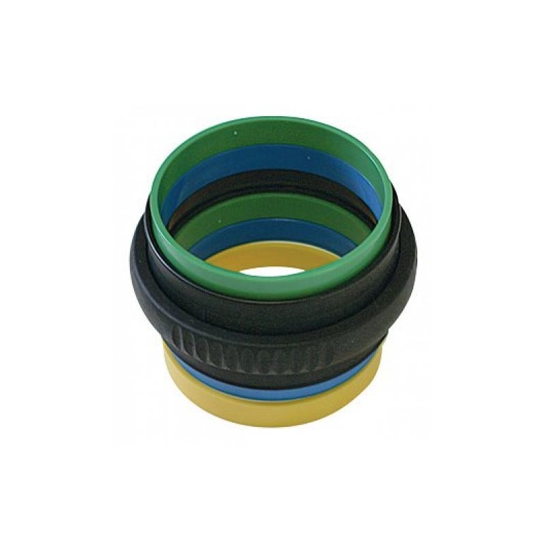 El set se suministra con distintos aros espaciuadores de distintos gruesos para utilizar el adecuado en función del grosor del manguito del traje y por la otra banda, del grosor del guante.
