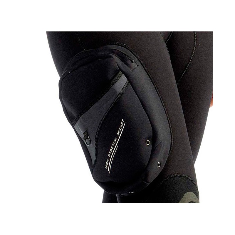 • Traje semiseco con forro exterior 100% Ultraspan©  superelástico, para unir la tradicional hermeticidad de este formato de traje con una gran elasticidad y confort del buceador.