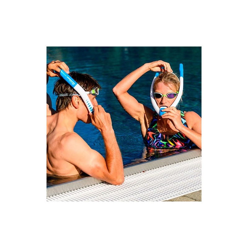 Con el Snorkel POWERBREATHER, respirar mientras nadas se vuelve fácil. Gracias al sistema patentado AMEO FRESH AIR SYSTEM inhalarás y exhalarás por medio de dos canales completamente separados, así que solo entrará en tus pulmones aire fresco y rico en oxígeno., evitando que parte del aire exhalado que contiene una alta concentración de CO2 regrese a los pulmones. Al mismo tiempo, la innovadora tecnología de la válvula asegura que no pueda entrar agua. Como resultado puedes respirar en el agua igual a como lo haces en tierra.