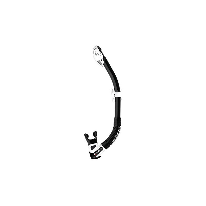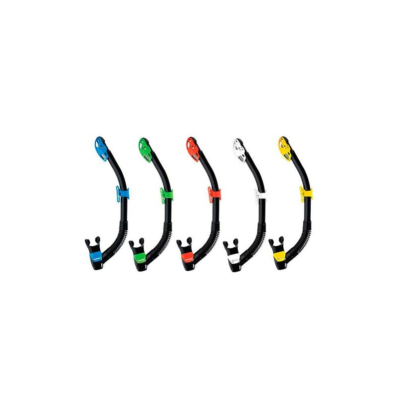 Un tubo con un extremo superior 100 % seco que ofrece un gran confort de respiración gracias al gran volumen de la base. Incluye una fijación deslizante y un tubo ondulado y una boquilla de silicona. Disponible en ocho colores.